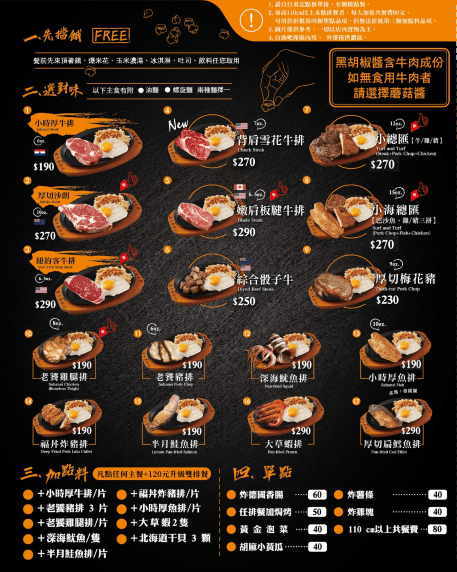 小時厚牛排以平價優質排餐為主打,品項選擇多元豐富,還有超優質的組合排餐讓大家能夠一次品嚐到三種不同的主食!