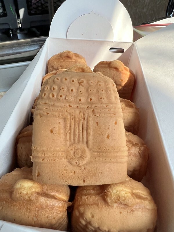 一邊是製作釣鐘燒與販售小林煎餅的日式小屋,