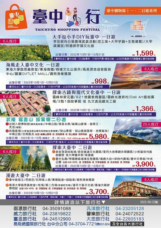 有興趣的民眾,可洽以下七家臺中在地旅行社。