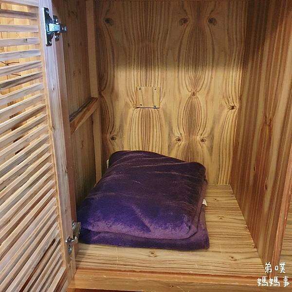 晚上入睡真的很冷,櫃子內也有毛茸茸毯子可以使用,幸好弟噗媽有先搶一條被子,隔天老爺說他半夜被冷醒