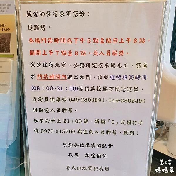 弟噗媽訂房過程,電話有點難打,不是每次都順利。一開始在電話訂房就會強調他們是學校單位經營,主要會以email來聯繫。不過我的mail聯繫過程不是很順,過很久才收到mail,電話又打不通有點囧,就在快放棄的時候mail就來了,最後還是想要走看看。價位部分雖然是學校單位經營,但沒有想像中的學校單位的便宜,但這住宿有搭配到園區導覽活動(森林GOGO (二天一夜)、晚上觀星、早晨賞鳥等等,包早餐,弟噗媽覺得還滿ok。整體課程讓人感到不便就是隔天早上那個九點,早餐、退房都擠在那個時間,早餐又只開放1個小時,如果掌控不好,其實很難在九點出現在上課的地方