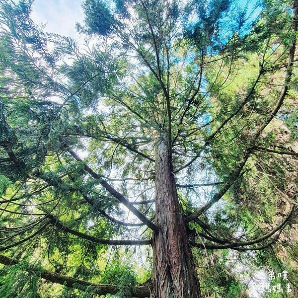 走過林間小路,迎接來的是這顆臺灣杉,台灣原生種,東亞第一高樹,也是台灣可以長最高的樹