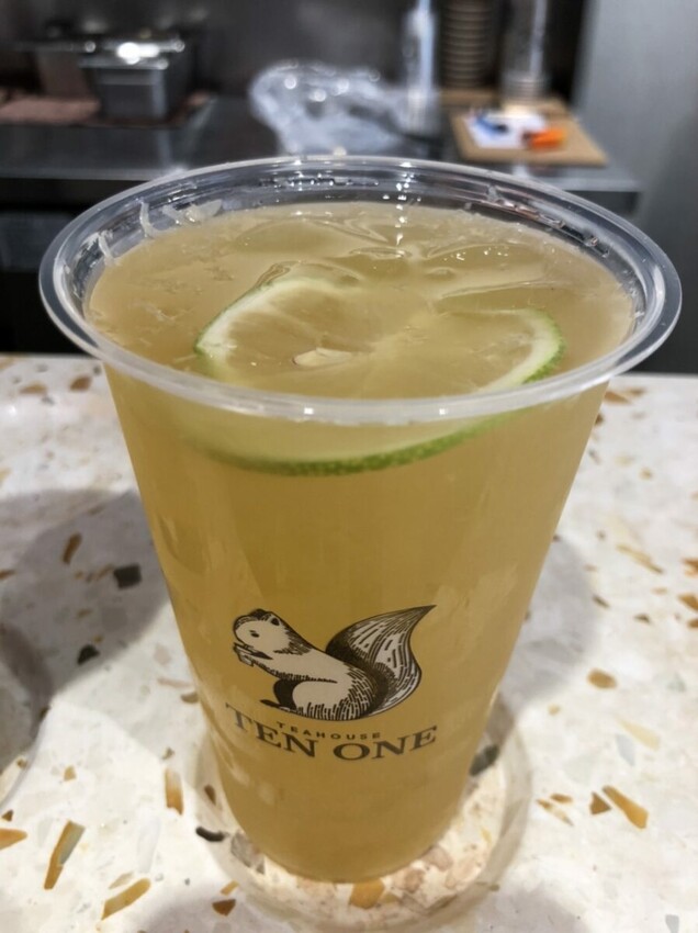 桂花檸檬,帶有桂花香氣,鋪上一片檸檬,檸檬口感微酸清爽,檸檬果肉飄散,視覺上更為清涼消暑氣