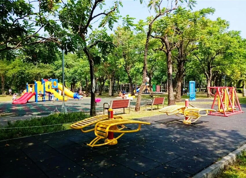 既然是公園,當然也少不了兒童遊戲區,光是這些遊樂器材就夠小孩開心了
