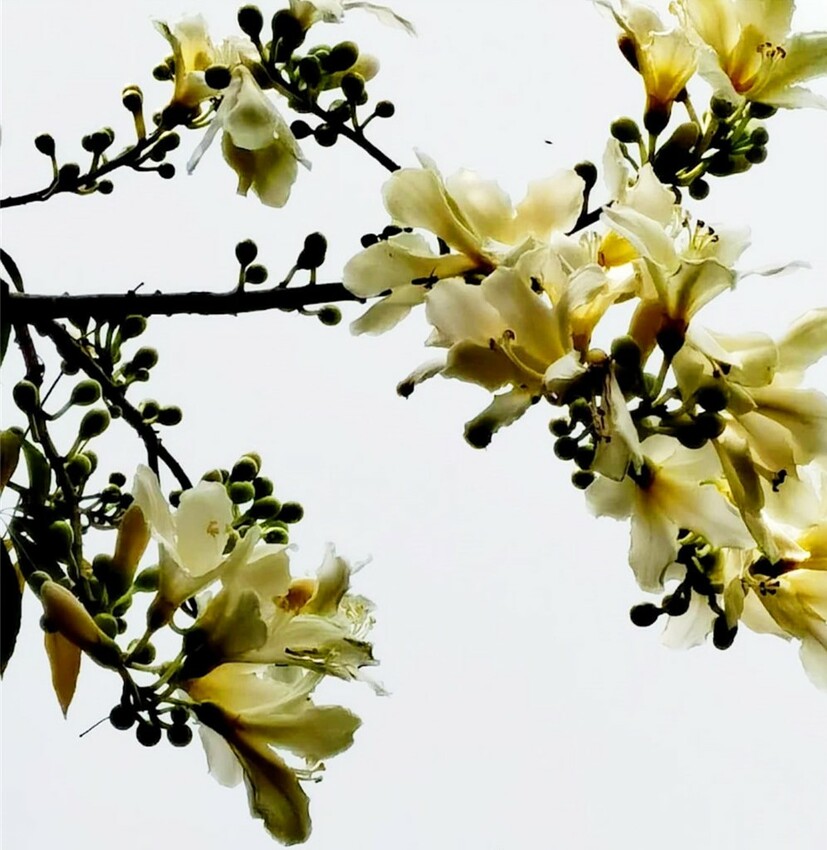 鏡頭拉近把白美人樹的花拍得更清楚些,不論遠觀或近看都很美,難怪要叫酒瓶木棉