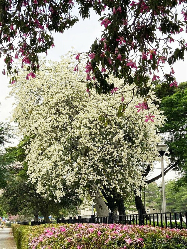 瞧瞧這棵白色的美人樹甚至延伸到人行道來了