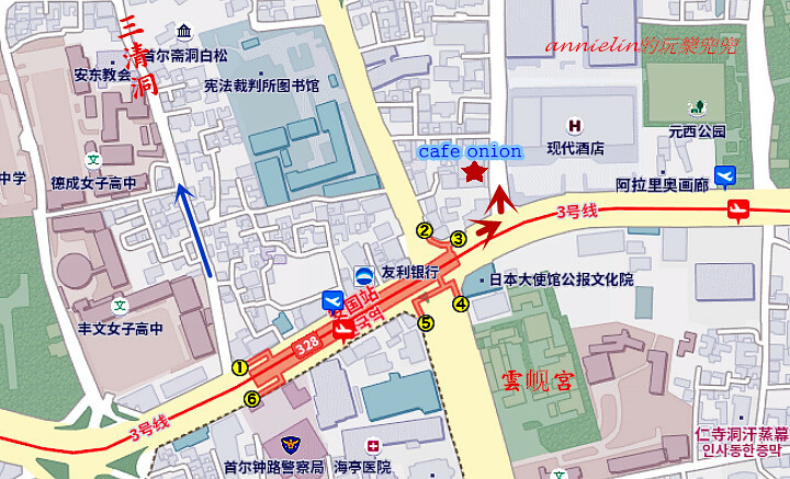 交通:地鐵3號線-安國(Anguk)站3號出口步行1分鐘