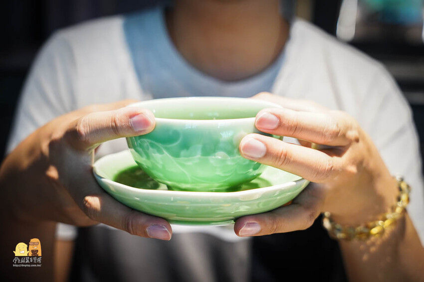 必須要這樣連盤子一起端起來喝~這才是最正式的沉雨晴湯品喝法喔!
