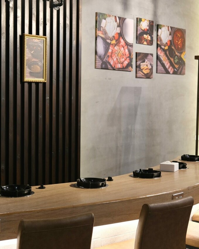 ▼【鼎宴精緻鍋物】延續沉穩的色調風格,以木質調裝潢搭配紅磚牆面,給人一種很舒適放鬆的氛圍,以U字型的吧台座位為主,無論是聚餐還是獨自享用都很適合。