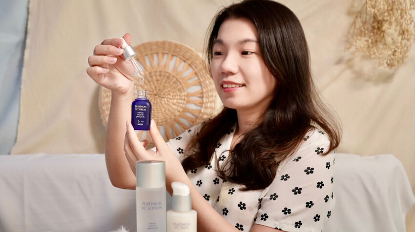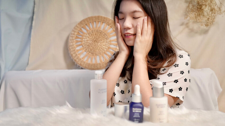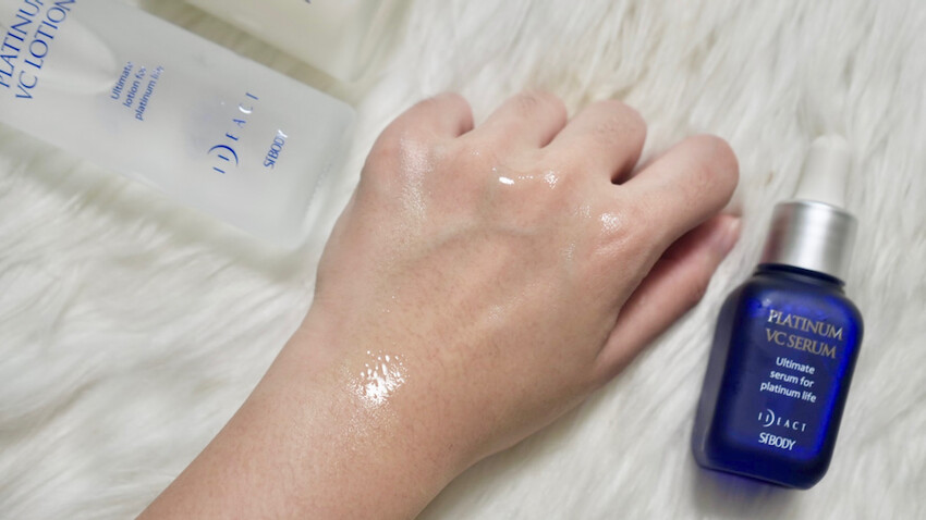 化妝水使用後,一定要接著用「VC鉑金潤透精華液」,這罐小藍瓶真的很讓人驚艷,如果家裡有很多化妝水、乳液,那你可以單獨購入它,是我最近最愛的精華液囉!