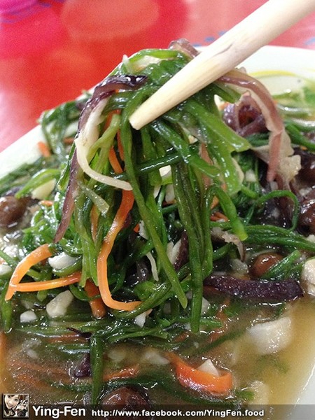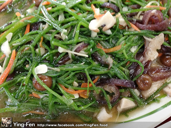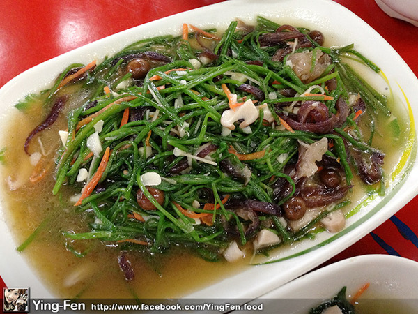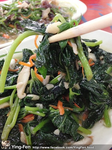 跟台北的不一樣,這裡炒的水蓮旁邊還有加一些,紅蘿蔔絲、木耳和香菇,讓整盤菜顏色好豐富,看了就胃口大開。