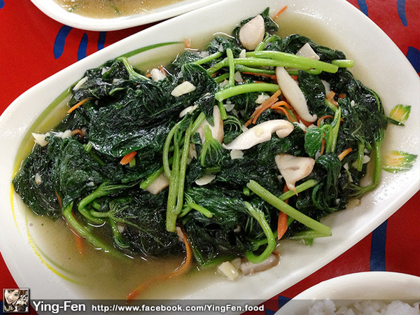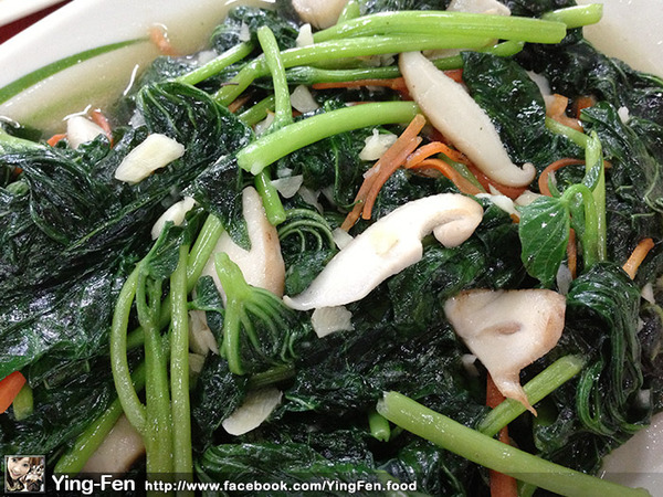 地瓜葉旁邊也有加紅蘿蔔絲和香菇,看起來也很豐富。