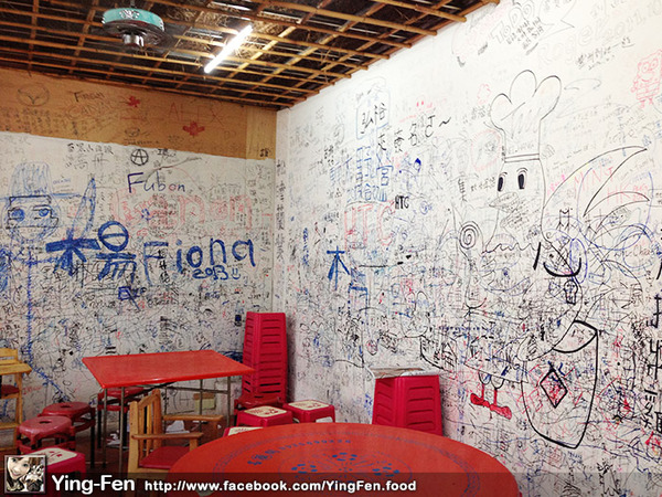 店家的牆壁好多人來過留言的痕跡,滿滿的都是字。