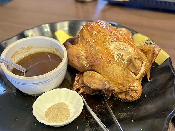 瞧瞧這隻金黃焦糖烤色的烤雞,