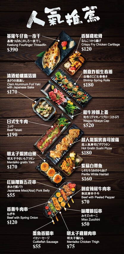 初次前往隱居,不曉得該點什麼?不妨跟著〝人氣推薦〞的MENU點選,保證不踩雷!其提供的品項太多,不好一一拍照,想知道隱居的消費價位及高清菜單請至隱居いざかや。