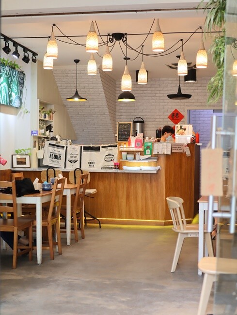 ◆ 門口外觀掛滿綠色小盆栽真的很清新,內用環境以木質調為主,上面掛的多盞小燈很有設計感。