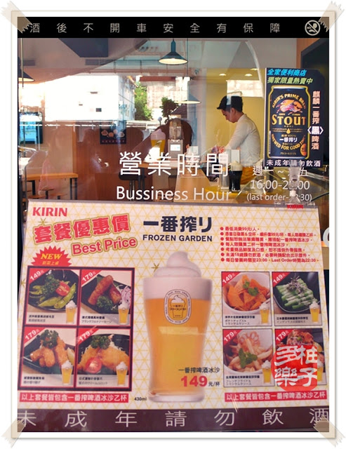 店內處處可見麒麟啤酒的相關擺設,挺吸睛的,跟店外一樣,且不忘放上這個月11日上市的黑啤酒冰沙相關小物。就宣傳與整體規劃部分還真的是很佩服日本人。