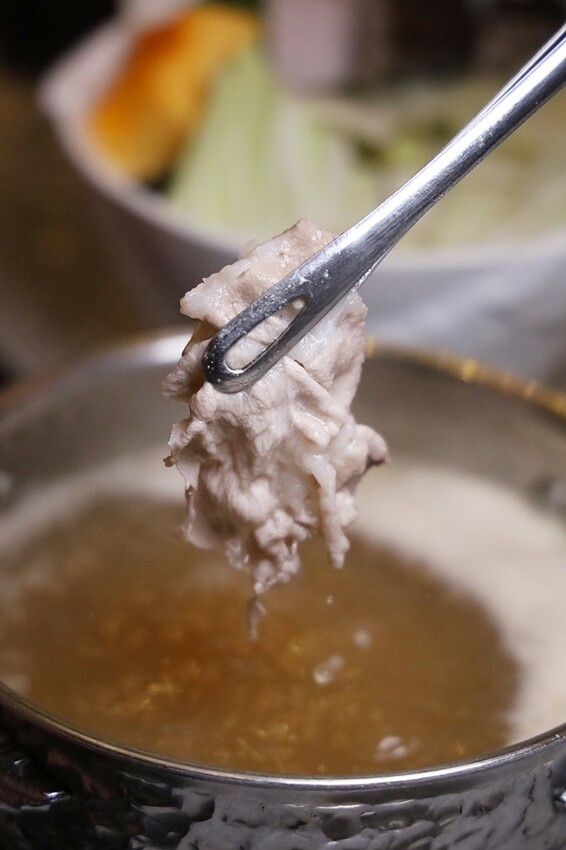 伯樂肉倒也是第一次吃到,也是品質非常好的牛部位之一,牛肉本身油花線條分佈細緻,涮入花雕風味的湯頭,能吃到肉質原本的鮮甜味,果不其然這樣的涮法,咀嚼在嘴裡除了有牛肉香氣尾韻還有淡淡的花雕香,彼此不互相衝突~