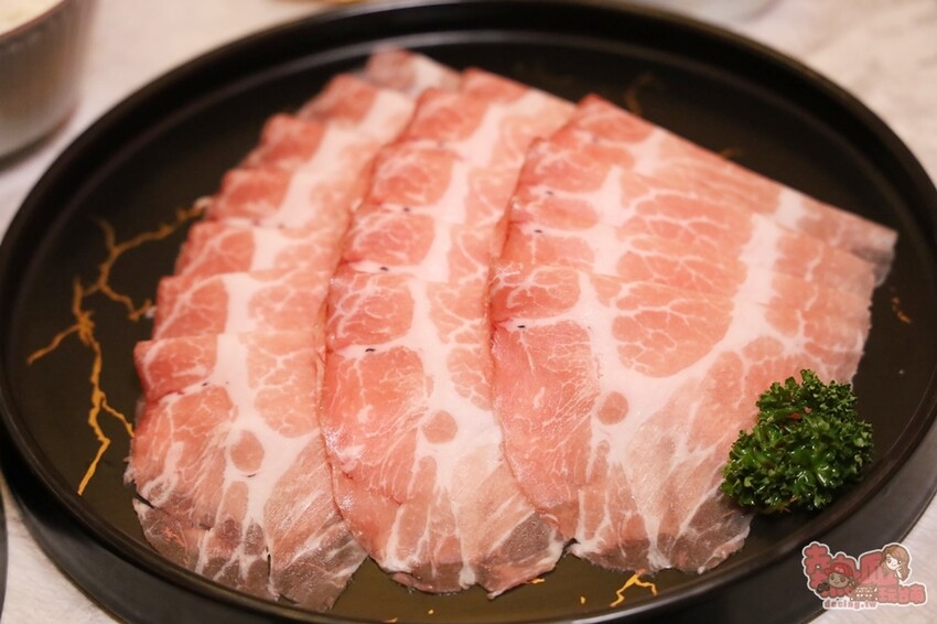 選用品質比較好的伊比利豬,豬肉片攤開後肉片分佈比較勻稱,吃起來也完全不輸其他牛肉水準喔!