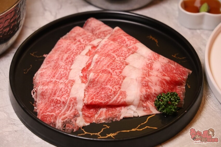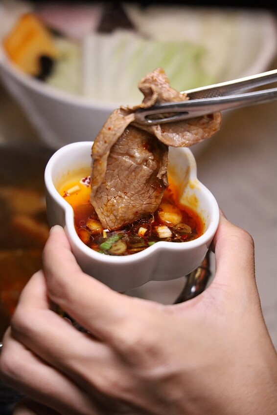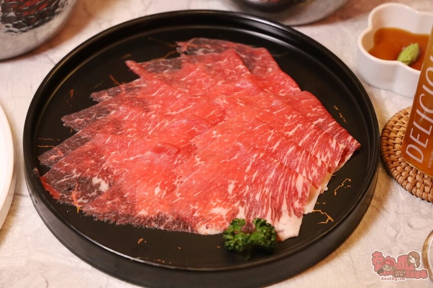 日本牛背肩,光看這牛肉的油花就偏少,可以直接吃到比較扎實飽滿的牛肉甜味,涮入麻辣鍋約莫5~6分熟,帶點咀嚼感吃起來相當過癮!