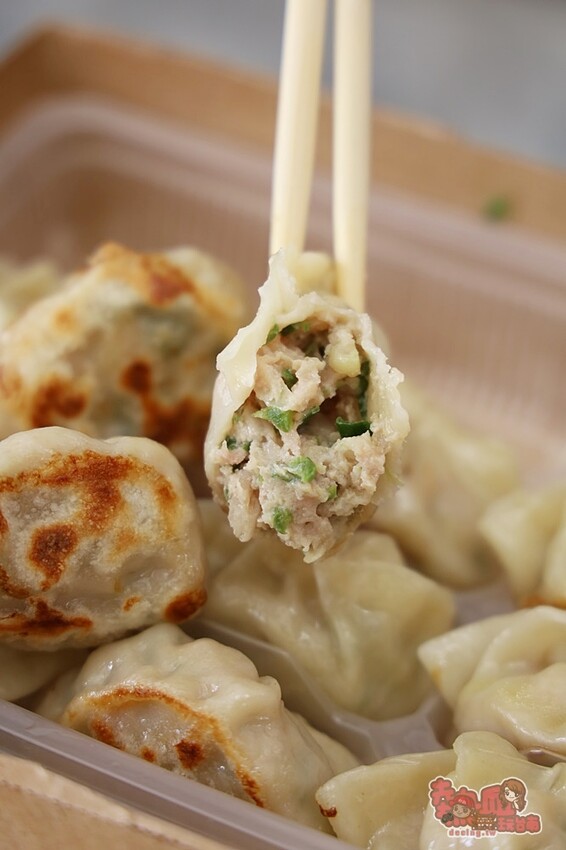 煎餃皮本身很Q彈,餡料飽滿,吃起來有一點微微辣感,隨著越咀嚼越發香氣及後勁,不嗆口但香氣及味道都讓人好喜歡,心愛a還忍不住回頭對店家皮和餡料都好好吃,店家說因為皮和餡料都是新鮮製作,原來新鮮的煎餃這麼好吃。