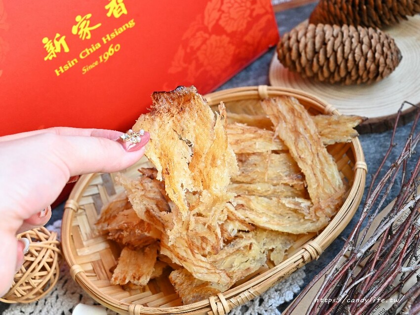 新家香的招牌蜜汁厚切肉乾可是送禮首選,逢年過節都賣得嚇嚇叫,採用台灣豬肉手工烘製,帶有厚度口感相當紮實,嚼起來帶有香甜的蜜汁香氣,鹹甜交織,讓人越嚼越香,追劇必備神器