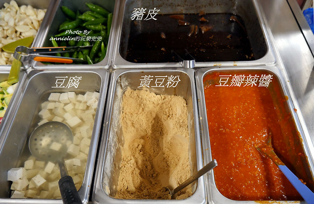 另外還有三種醬料分別是,油醋鹽、豆粉、辣豆瓣醬和辣醬拌蔥絲,