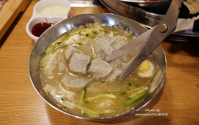 韓國人不分冬天夏天,吃烤肉都會搭配冷麵,然後一定要加大量的芥末和白醋!