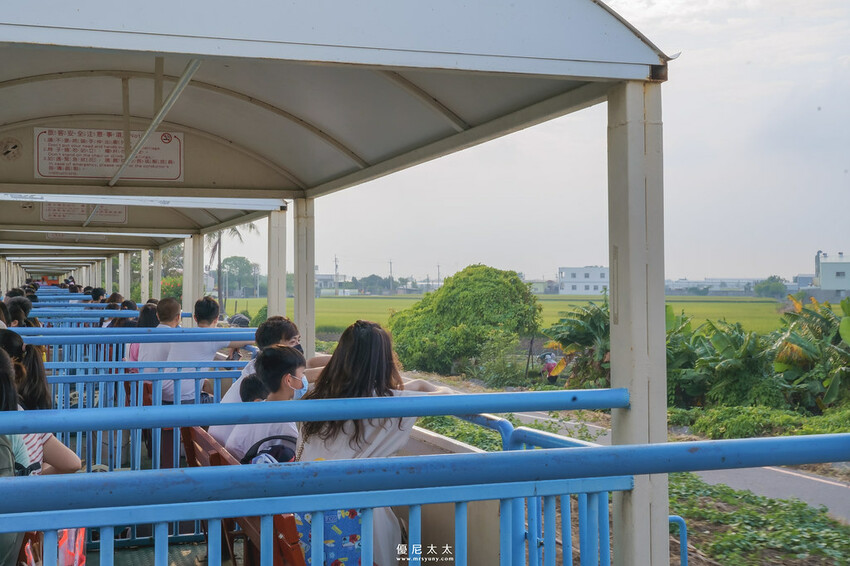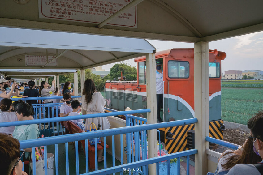 隨著火車發出響亮的鳴笛聲,車站旁的工作人員紛紛揮手送行,火車就這樣緩緩的駛出糖廠園區,穿梭大街小巷行經田野,下午時分的微風是如此的舒適,搭乘小火車沿途所看到的彰化稻田,這是鄉村中獨有的愜意氛圍,不僅如此,沿途上行經道路、田間,孩子們最開心的莫過於對著所有關注火車的人們揮手致意,儼然就像是個小車長。