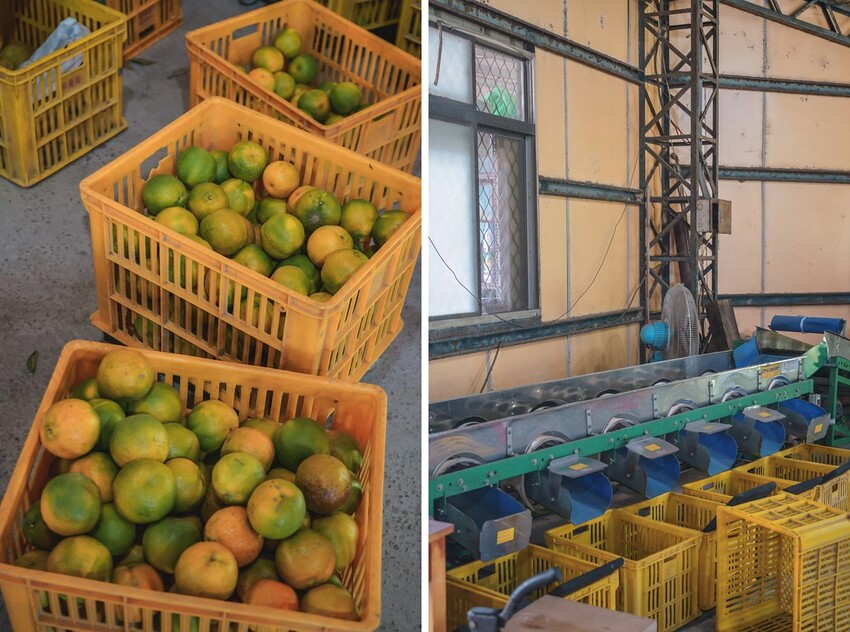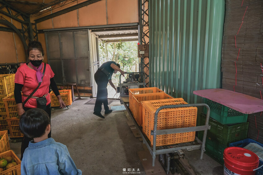 其實蠻多旅人會在爬完大坑步道後,再過來這裡直接買椪柑,不用進果園也可以。方才有提及,從山頂上採下的椪柑會利用單軌車運下山,老闆則在起進行簡單的去塵及椪柑品質篩選,機器都在現場,老闆也很親切的和大家說明運作方式,算是上了一堂課,是個很不錯的親子假日去處。