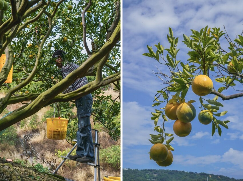 在臺灣,椪柑可從每年11月持續品嚐到農曆年節過後,這次要帶著你一起來到台中北屯區的山坡果園,來個秋冬限定的採果活動,而且老闆標榜100元入場後,園區採到的椪柑『隨你吃到飽』!坐在山坡上吃的酸甜的椪柑,欣賞大坑山區美景,如果幸運的話,還可以聽到轟隆隆的『採果單軌車』,伴隨著柴油氣味緩慢地從山頂上載貨下來,滿箱黃澄澄的椪柑令人垂涎三尺。