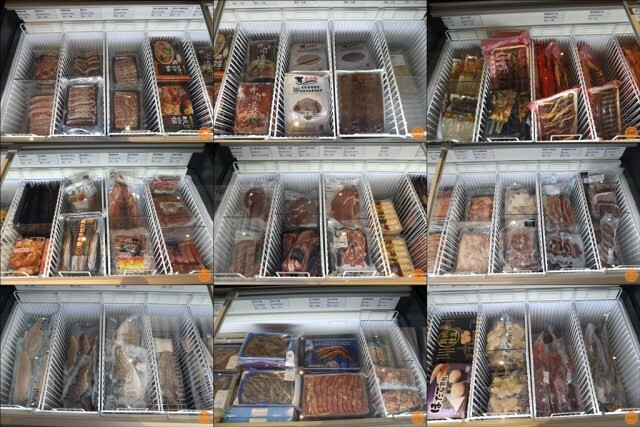 左右兩側也備有高腳椅之外,店內的冷凍櫃可是陳列著滿滿的多種肉品及海鮮!