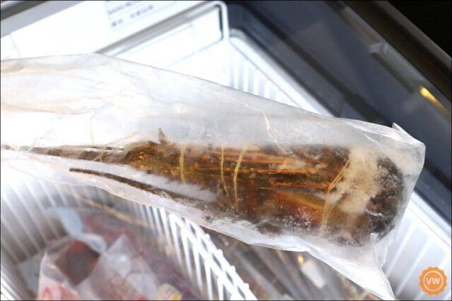 生凍龍蝦在料理上其實蠻方便的,買回家之後,採沖流水退冰解凍約 10 分鐘,再用剪刀從腹部的地方對半剪開即可下鍋烹煮,殼薄肉多,肉質緊實鮮甜!