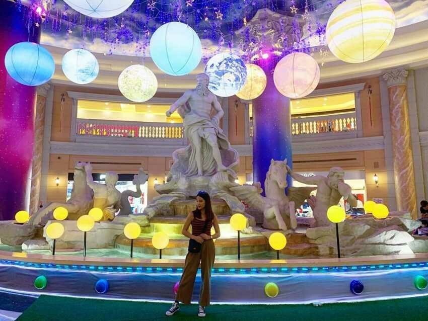 IG版面常看到的就是這區啦!走進這裡天空飄起了藍天白雲,有種彷彿掉入澳門威尼斯人的錯覺,長110公尺的天幕廊道及攤販充滿了義大利風格,走到盡頭可以看到一處以羅馬白石像構成的噴水池,天花板定時還會有燈光秀,是來到這裡必拍打絕對是必做的事之一!