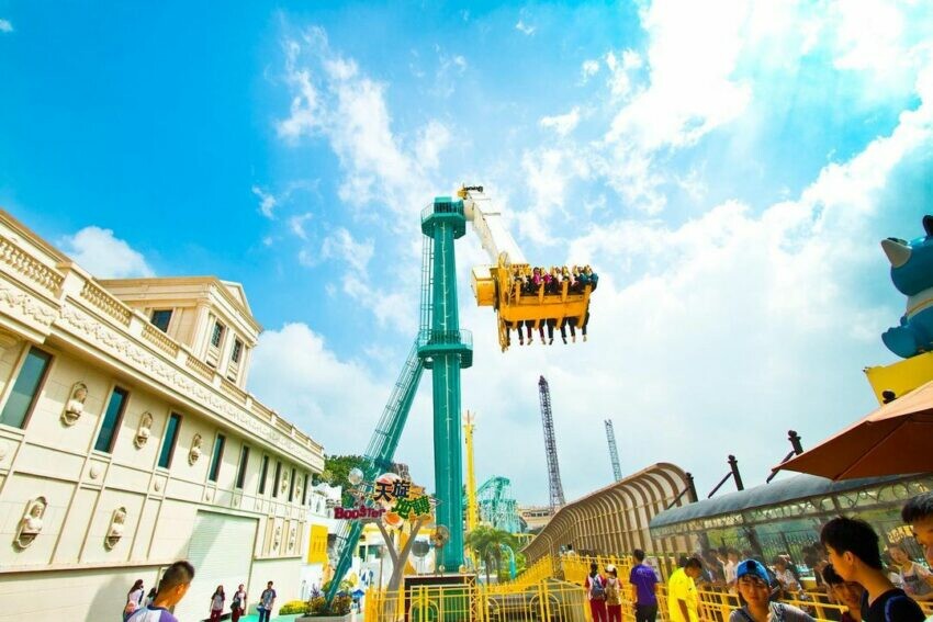 走出戶外後,應該會立馬被這18層樓高的巨型遊具吸引!希歡玩海盜船的朋友一定要來挑戰一下這有如升級版的「天旋地轉」,光是左右擺盪不夠看,能三百六十度天翻地覆才夠刺激,不只這樣除了公轉以外座椅還會自轉,整整120秒的暈頭轉向加上離心力,心跳指數簡直破百了!