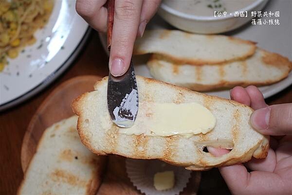烤的焦香酥脆的香草麵包,輕輕的塗上一層薄薄的鹹奶油。