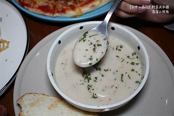 首先送來的是豪華套餐裡的菌菇濃湯和香草麵包,而經典套餐則是附有抹醬的香草麵包。