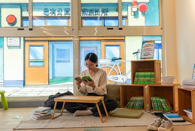 一出電梯是漫畫休息區,遊客可在這看漫畫打卡,備有整套的烏龍派出所供粉絲回味。