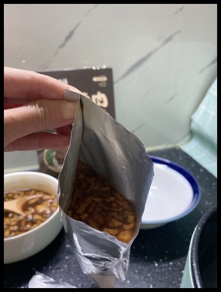 3.電鍋加熱:將調理包置於瓷碗中,電鍋放入半杯水待跳起