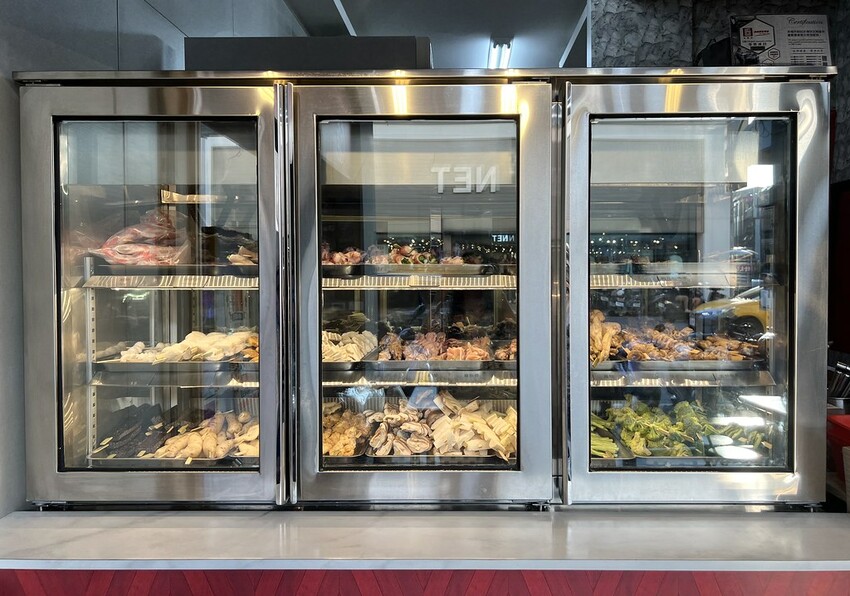 烤肉都擺放在冷藏展示櫥中,乾淨衛生讓人放心夾取。