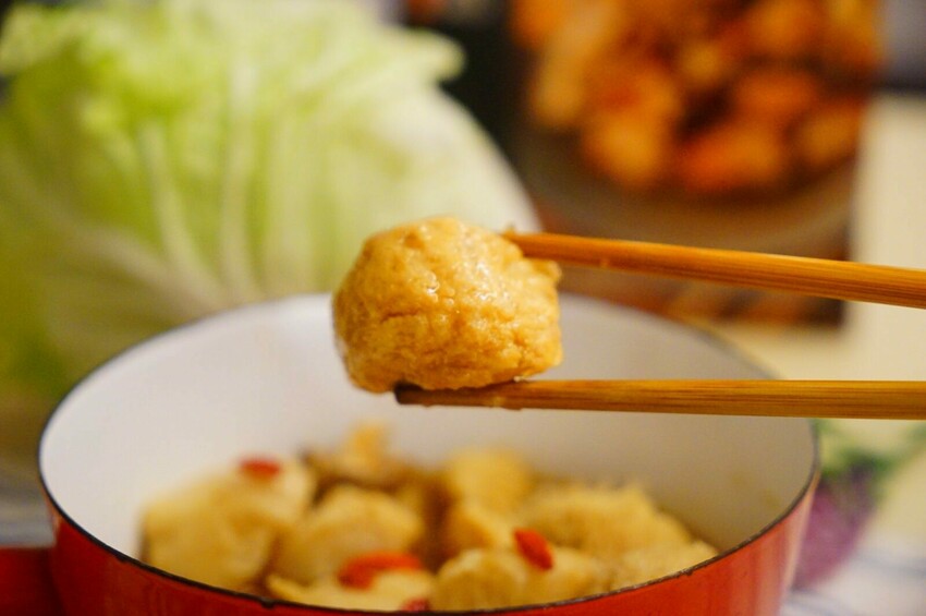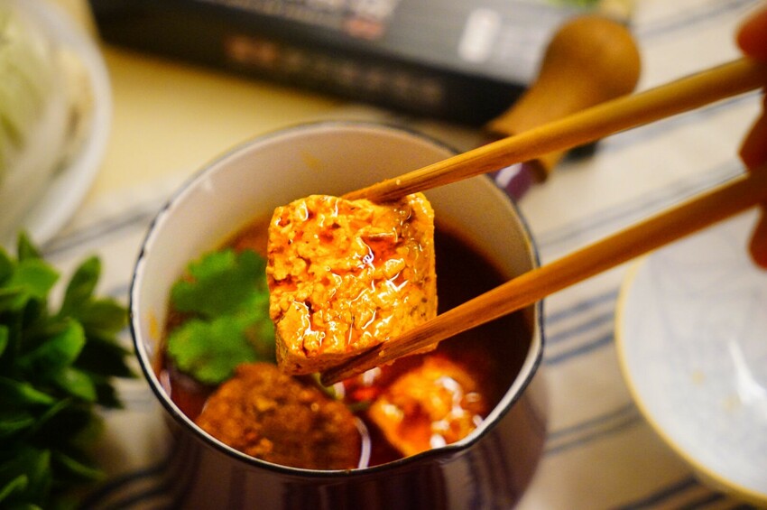 湯底以熟成豆瓣醬、甘醇釀造醬油為基底,再加入花椒、八角等16種辛香料一起熬煮,打開包裝時就有一股濃郁花椒香氣, 吸飽湯汁的傳統老豆腐有滿滿燉煮過後才能留下的孔洞!