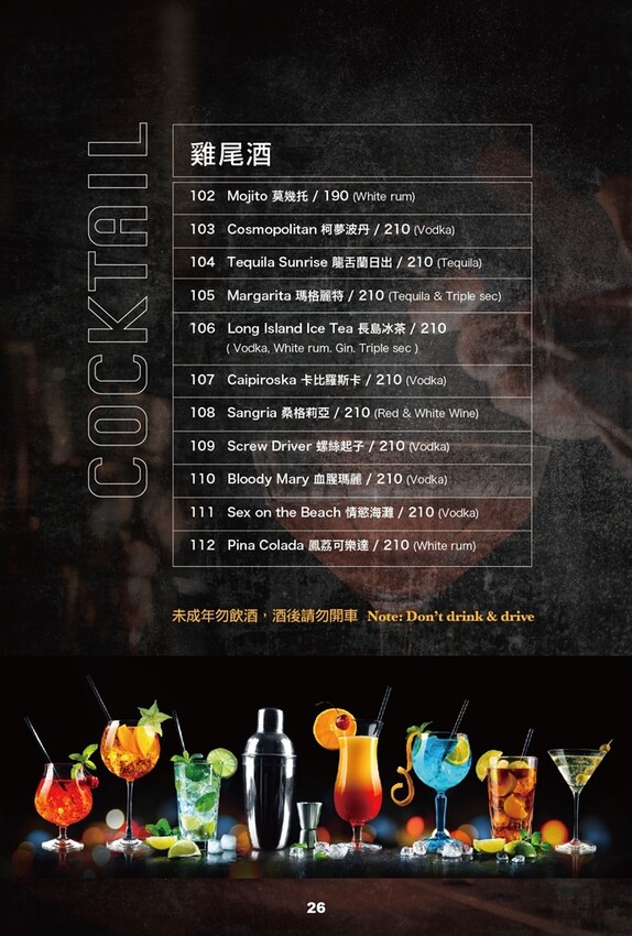 吃咖哩當然也少不了飲料囉!有無酒精飲料、雞尾酒、烈酒等多種不同的選擇