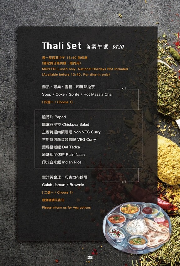 這間餐廳是由印度老闆帶領印度籍的廚師團隊,選用道地印度香料烹煮出多道豐富菜色,相當原汁原味
