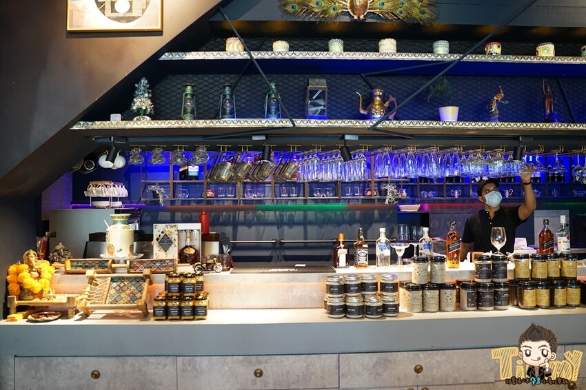 最裡面的吧台,這裡除了提供印度拉茶、印式優格等無酒精飲品以外,還有特調雞尾酒、烈酒,除了享用印度菜以外,還可以來個微醺的享受喔