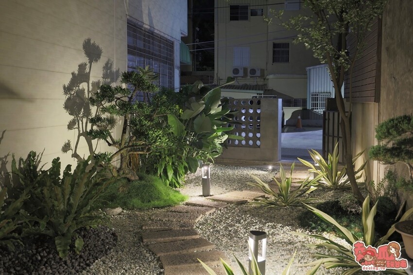 食光宴餐館入口處,有別於以往善化其他餐館給我們的感覺,打造成綠意盎然的庭園空間,搭配著刻意調暗的燈光,沿著石板走,有一種彷彿穿越時光膠囊的低調奢華感。