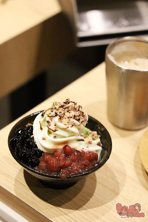 飯後也有日式抹茶霜淇淋、牛奶霜淇淋及抹茶牛奶霜淇淋三種可任選,想要直接這樣吃也可以,又或是再淋上一旁提供的紅豆泥、黑糖粉這樣吃也超霸氣~