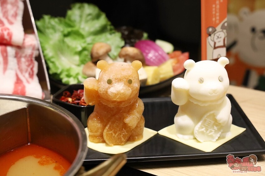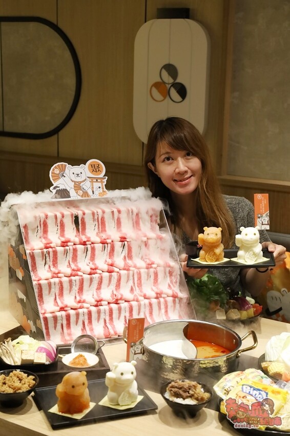 我們選的湯底是激辛麻辣湯以及 札幌熊起司牛奶湯兩種鴛鴦鍋底,每份鍋底還隨附兩隻可愛熊分別是麻辣及牛奶起司口味,放入鍋內擺在一起萌萌的模樣好療癒。