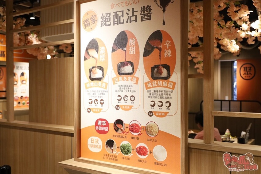 來看看醬料區,光是搭配火鍋的主要醬料就有8種以上,誰說吃鍋一定要沾沙茶呢,這裡有味增山葵醬、洋蔥多蜜醬等外面少見的醬都值得試試。