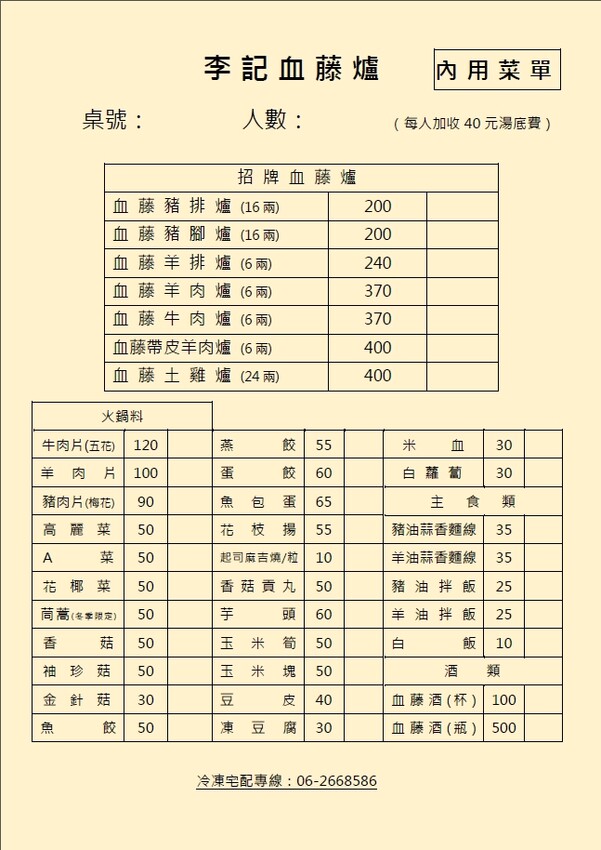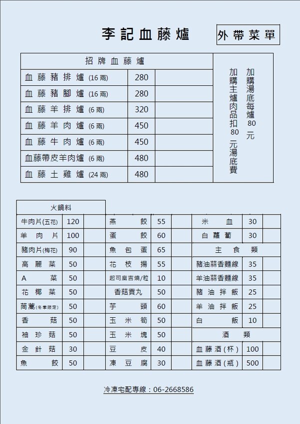 李記血藤爐 菜單 MENU