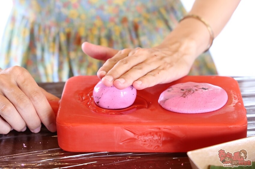 以前小時候還蠻喜歡吃紅龜粿的,倒還是第一次自己製作,說簡單其實也有點小眉角,先將麵糰一分為二,然後將餡料給包進去,最後再放入模具裡面成型就可以了,不會太耗時間,但卻可以讓你的旅行充滿回憶。